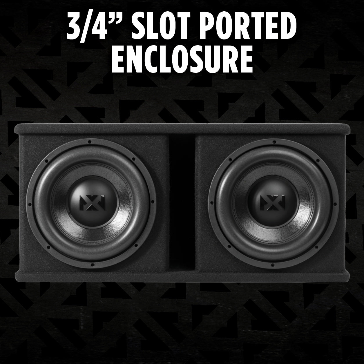 NPKG212 1000W Peak (500W RMS) Loaded Dual 12" Subwoofer with Slot Ported Enclosure and Monoblock Amplifier with Remote Bass Knob and Amplifier Wiring Kit