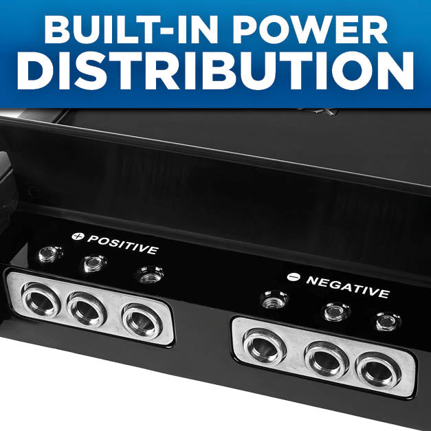 • Screw terminals for easy connections of 1/0 AWG or 4 AWG power/ground cable