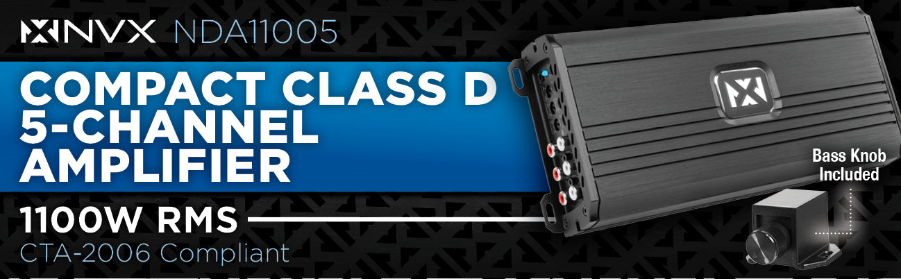 NDA11005 2200W Peak (1100W RMS) N-Series Class-D 5-Channel Amplifier with Remote Bass Knob