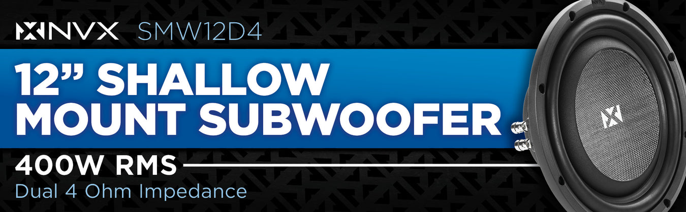 SMW12D4 800W Peak (400W RMS) S-Series Shallow-Mount 12" Dual 4-Ohm Subwoofer