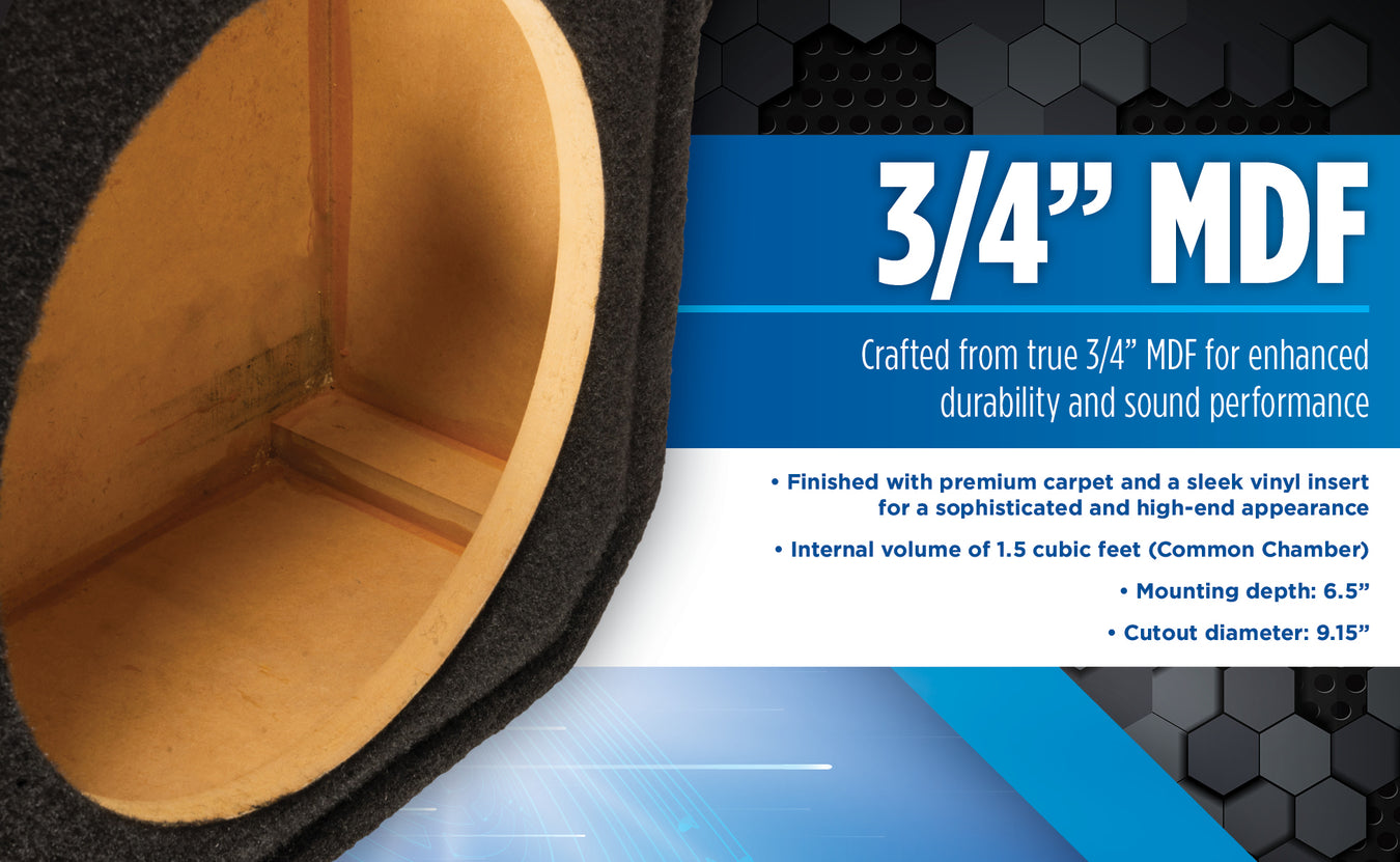- Crafted from 3/4" MDF (Medium Density Fiberboard) for enhanced durability and sound performance.