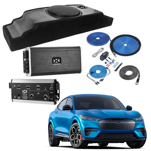 2021-up Ford Mustang Mach-E Bass Package - Includes 12" 400W RMS Subwoofer, Custom Enclosure, Monoblock Amplifier, Line Out Converter and Complete Wiring Kit (PBK-FRD-MME-G1)