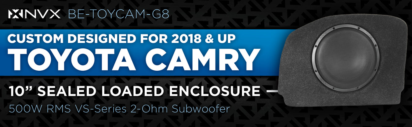 2018 and Up Toyota Camry - Custom 500W RMS 10" Loaded Subwoofer Enclosure | NVX BE-TOYCAM-G8